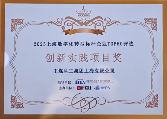 喜报!上海煤科荣获2023上海数字化转型标杆企业TOP50“创新实践项目”奖