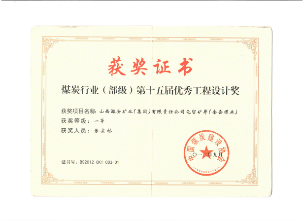 作为项目负责人主持设计的山西潞安集团屯留矿井(现名称:余吾煤业有限责任公司)设计生产能力6.00 Mt/a。采煤方法采用准大采高综采放顶煤开采,此采煤方法获山西省科技进步二等奖。一期工程2007年5月竣工投产,二期工程2010年9月竣工投产。屯留矿井具有煤层埋藏深、地质构造复杂、瓦斯含量高等诸多复杂条件,设计采用适用、安全、经济、可靠和促进可持续发展的创新技术,经实践检验取得了良好的经济、社会和环境效益。屯留矿井的设计不仅为此类型矿井提供了切实可靠的技术解决方案,而且有力推动了同类矿井设计的技术进步,成为当时矿井设计的样板矿井,具有示范作用,促进了煤炭工业的健康可持续发展。屯留矿井是同时期同等条件下科技含量最高、安全系数最高的国际领先、国内一流的绿色环保型矿山。项目获煤炭行业优秀工程设计一等奖,主井提升系统获国优工程鲁班奖。