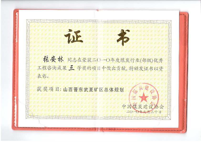 主持设计的《山西潞安矿区总体规划》、《陕北煤炭基地规划》、《新疆大型煤炭基地规划》等8个项目先后获得煤炭行业优秀工程咨询成果特等、一等、二等、三等奖及国家优秀咨询一等奖。参与设计的活鸡兔、凤凰山和姚桥矿井先后获得国家设计金、银奖。