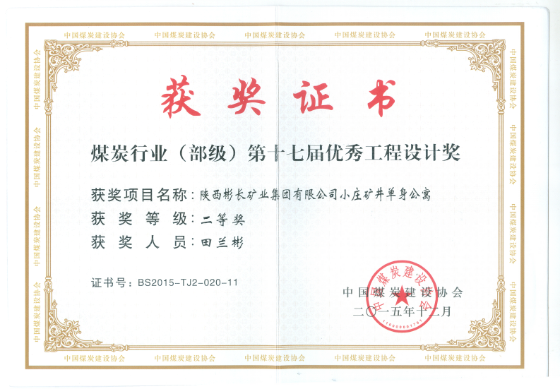 在矿井办公楼设计方面,首次提出了将矿办公楼、任务交代室、灯房、浴室、主、副井井口房、无轨胶轮车库、材料库等合建在一个综合楼内的方案,解决了用地紧张、材料、汽车等10多种不同活荷栽取值对结构计算的影响等问题。完成了国内第一座多功能现代化的矿井综合楼设计。获得煤炭行业(部级)第九届优秀工程设计一等奖。同时该工程的建成使用也为矿井被评为全国第十届优秀工程设计金奖、煤炭行业(部级)第十届优秀工程设计一等奖做作出了贡献。