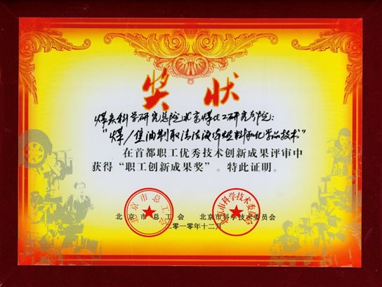 2 | 煤/焦油制取清洁液体燃料和化学品技术 | 第六届北京发明创新大赛协会/北京市职工技术协会奖 | 金奖 | 2012 |