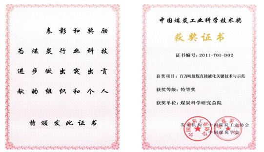 3 | 煤炭直接液化油煤浆特性研究与应用 | 中国石油和化学工业联合会科学进步奖 | 一等奖 | 2012 |