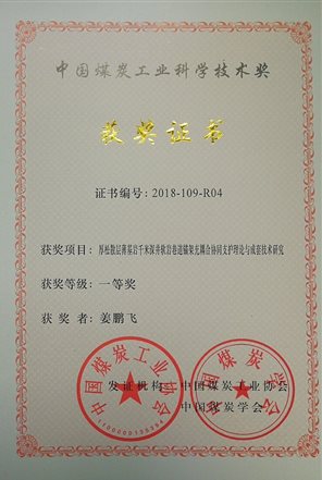 8、深部特厚煤层多次采动巷道围岩综合应力场演化及支护技术,2016年,中国煤炭工业科学技术二等奖,排名第2;